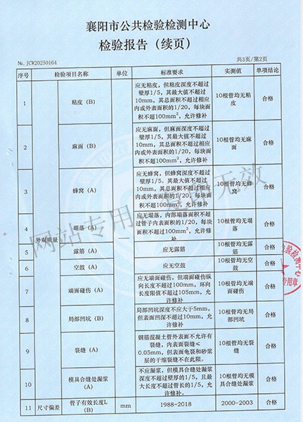 鋼筋混凝土排水管檢驗(yàn)報(bào)告